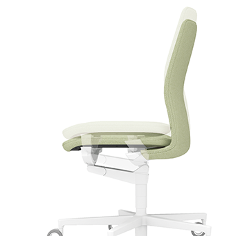 3つの姿勢「前傾・アップライト・後傾」を自然な揺れの中でサポート。前後のゆれで長時間ワークでも疲れにくい、ソリ脚タイプのワークチェアー。 - SEQUENCE シークエンス