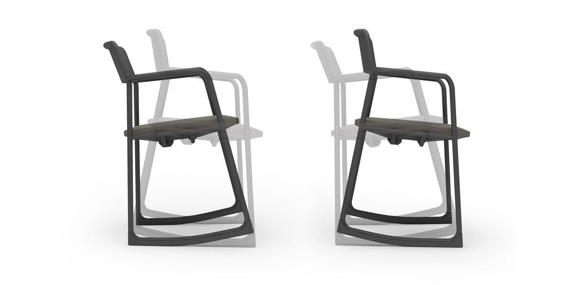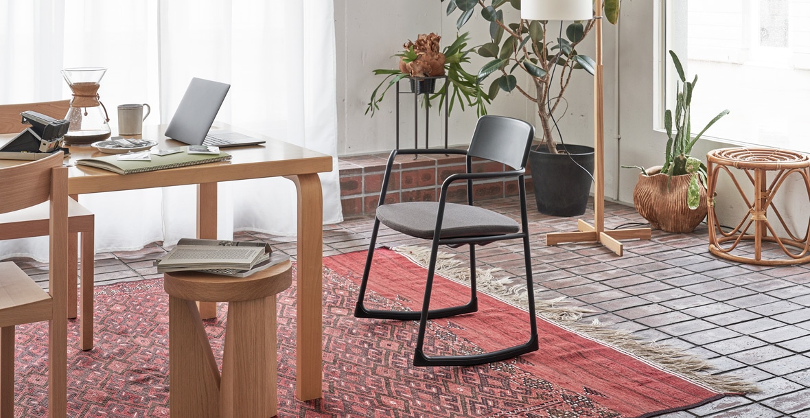 3つの姿勢「前傾・アップライト・後傾」を自然な揺れの中で、最適な姿勢をサポートするソリ脚のチェアー。