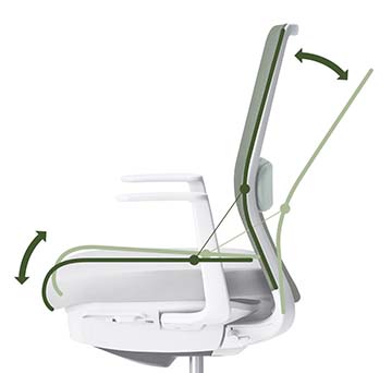 ロッキング時に背もたれと座面が連動する際のスムーズなフィット感や、どの角度でもバランスをとりやすい反力特性、座る人の体重に合わせてロッキング強度を自動調整する機能が、快適な作業姿勢をサポートします。