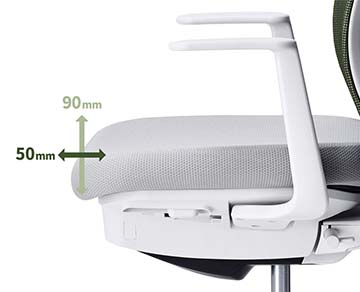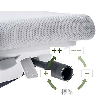 デスクの高さや体格、作業姿勢に合わせて、簡単なレバー操作で座面の高さと奥行きを好みの位置に調節できます。