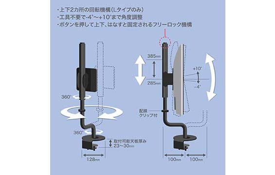 • デスクが広く使えるモニターアーム