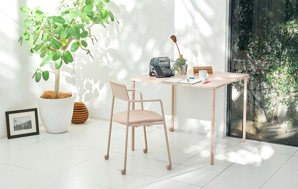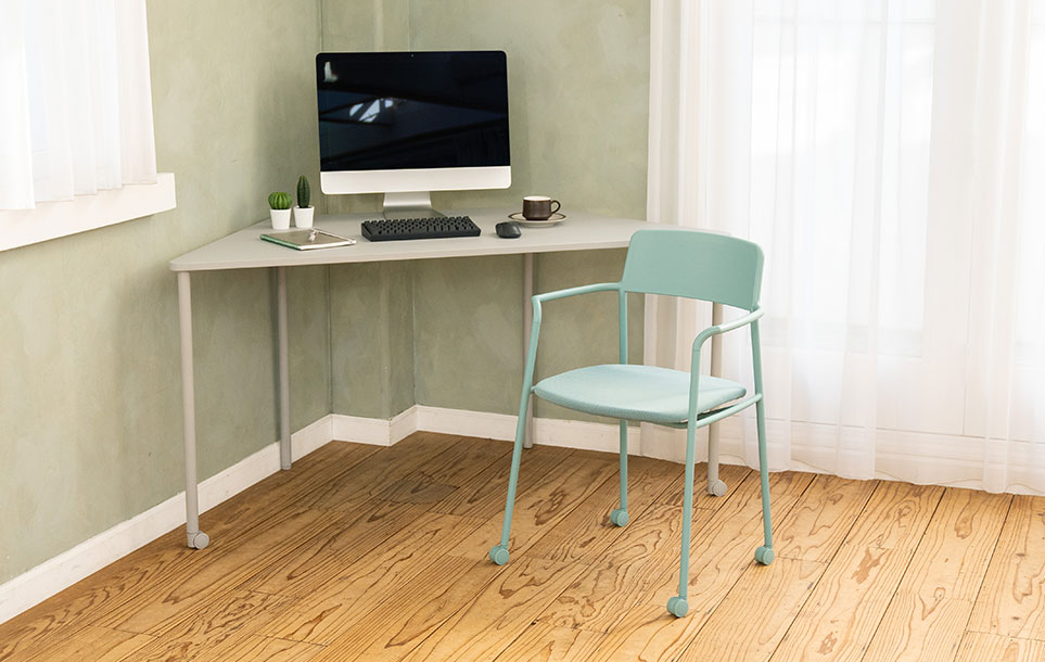 空間を手軽に変えられる機動性脚先にキャスターがついるので仕事モードやリラックスモードに合わせて移動や配置を変えることができます。