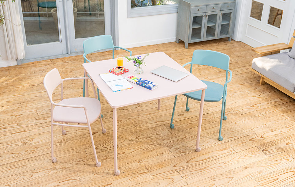 レイアウト変更やお部屋の掃除でも 1 人で楽にテーブルを移動させることができます。