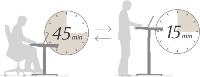 座った姿勢と立った姿勢を交互にとることで、体にかかる負担を調節できます。疲れた筋肉を休ませれば、心身のリフレッシュにも。1時間につき15分程度のスタンディングワークを取り入れるのがおすすめです。