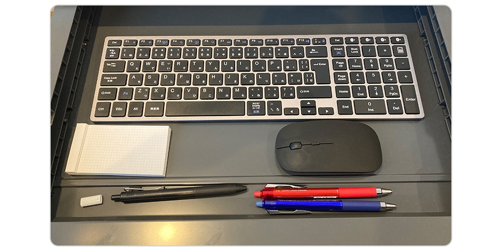 さらにリーンは、オプションで引き出しを付けることも可能。仕事で使うキーボードやマウスをしまったり、とっさに出したいメモとペンを入れています。使わない時は見えないのでリビング内の景観を損ねない点が良かったです。これからもう少しカスタマイズしていきます。