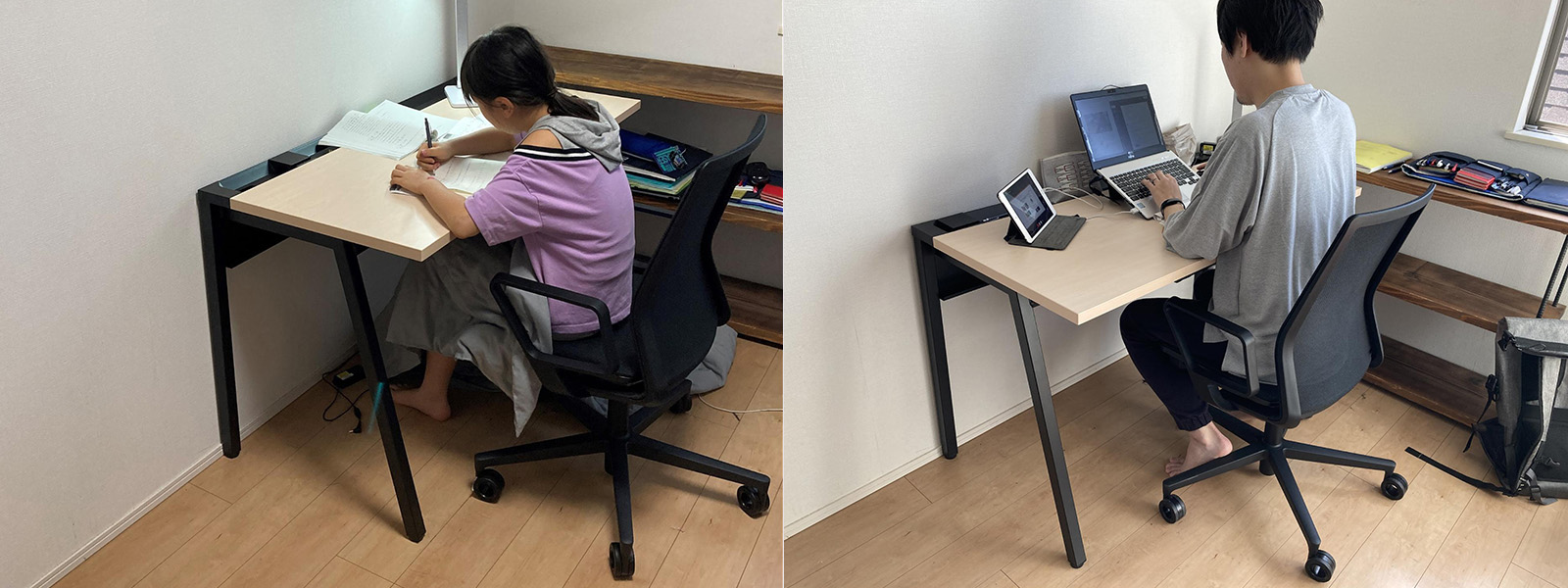 コロナ禍の中、我が家でも在宅用のイス・デスクをセットで揃え、妻と私が両方在宅ワークする際は、1人は1Fの書斎・1人は2Fのリビングと分かれてワークすることで音の問題等はカバーできていた。しかし、子供が英語塾(オンライン)を始めたときに冒頭の問題が起きた。「在宅中に働く場所がない!!」妻は1Fの書斎・子供は2Fのリビング・私は …2Fと3Fの階段、もしくはイス・デスクのない子供部屋でワーク。これじゃワークにならない。子供部屋に設置することを決めて、子供にも大人にも使えるイス・デスクを探す旅が始まりました。
