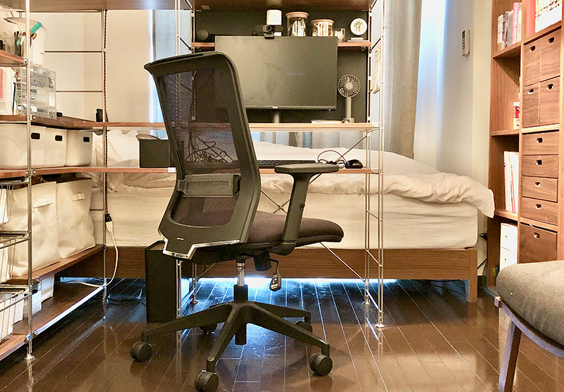 初めは普段会社で座っていた椅子と同じものを買えば間違いないはず!といろいろ調べてみたものの10万円近くすることが発覚。さすがに入社4年目には10万円の椅子はなかなか手が出せず、欲しかった椅子たちを泣く泣く諦めることに。結局価格最優先で調べ、色々な機能がついているのに約2万5000円とお買い得!と、「ENTRY」を購入することになりました。