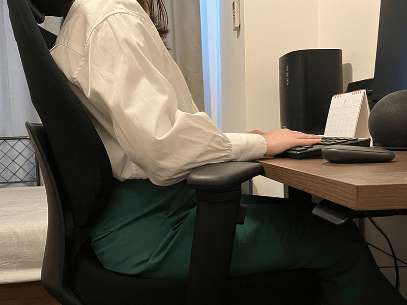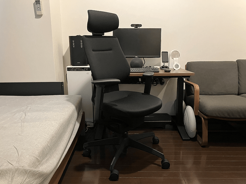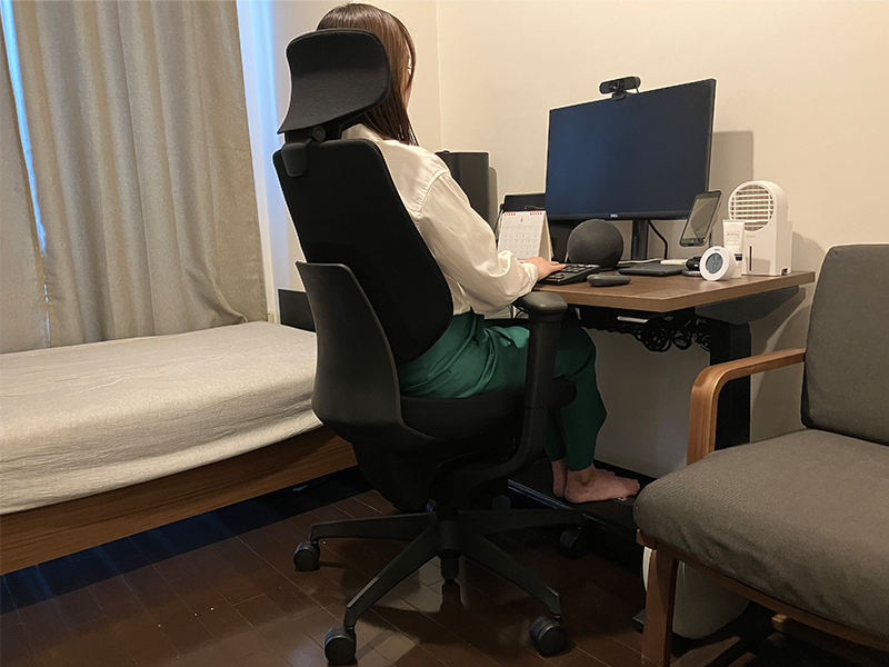 在宅勤務が始まるにあたって、一番初めに買ったものは椅子でした。買った当時は「どうせ一年くらいしか使わないだろうし安いやつでいいでしょ!」と、あまり考えず自社の中でお手頃価格の椅子の中から、座り心地が気に入ったものを購入しました。もちろん、コクヨ製品なので買ってから1年くらいは「良い椅子をお安く手に入れてしまったな~」なんて、浮かれていたのですが、1年をすぎるとさすがに週5一日8時間ではさすがにきつくなってきてしまい、会社で使っていた高性能な椅子が恋しくなってきました。