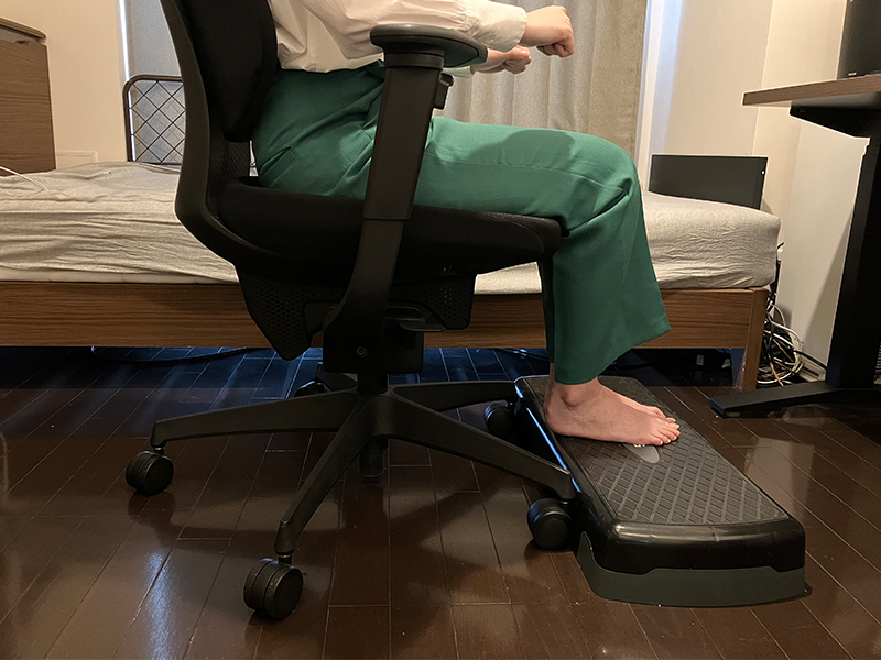 「ing」の方が「ingLIFE」よりも高い気がします(調べたら5mmの差なので気のせいかもしれません)。「ingLIFE」に座っているときはリラックス、「ing」に座っているときは、床に踏ん張って姿勢を正している感じ。疲れたな、と感じたらフットレスト(踏み台昇降用に買った踏み台)に足を乗せるとちょうど良かったです。