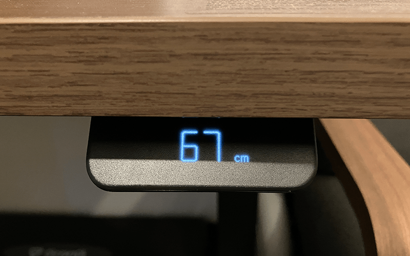 立ったときの高さと、座ったときの高さの2つを登録しておけば、レバーをトントンっと2回押すだけで、自動で登録しておいた高さに動いてくれます(ちなみ私はこの設定すらめんどくさいなと思ってしばらく登録してなかったのですが、調べてみたら設定方法がめちゃくちゃ簡単だし、メモリー機能が便利すぎて、しばらく登録しなかったのを後悔しました)。