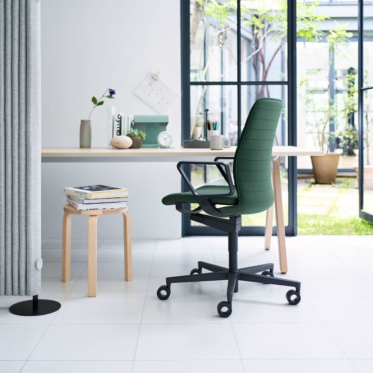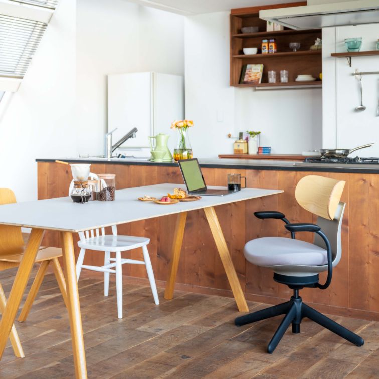 リビングライクなデザインとワーク機能を両立させた暮らしに溶け込む1000通りのデザイン。働く空間にやさしく馴染むカジュアルチェアー。