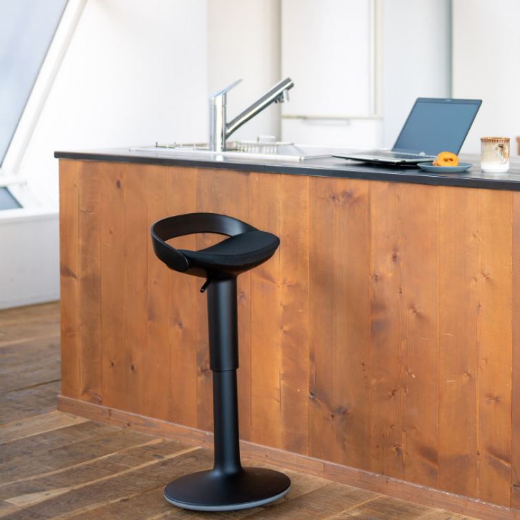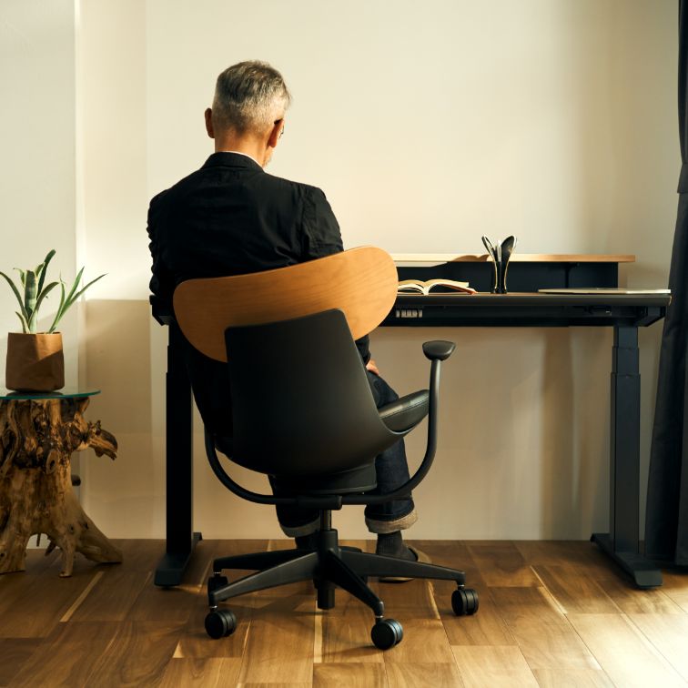 前傾姿勢でPCワークする時も、背にもたれてアイデアを練る時も、座るだけで自然に働きやすい姿勢に整えます。