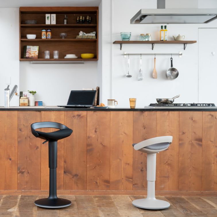 身体が固まりがちになることがわかり、動きがある椅子としてこちらをチョイス。デスクワークにも便利ですがキッチン横においてのんびり座りながら料理するのも良いです。取っ手が大きめなので持ち運びがしやすく、座面も幅が広いので長時間座っても疲れません。