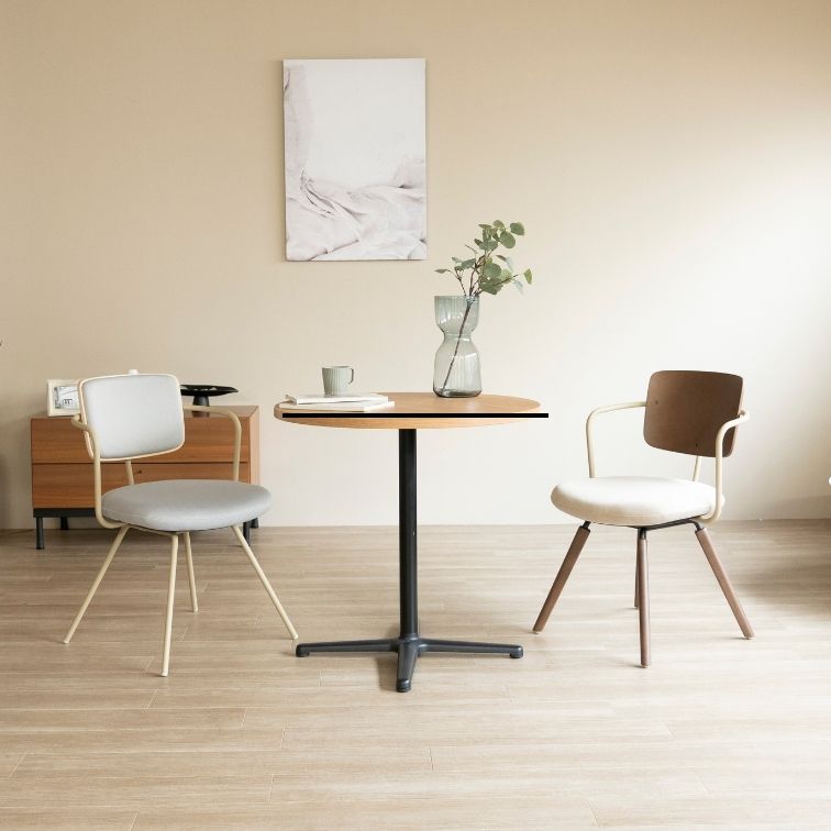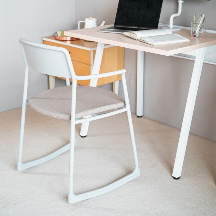 白基調の部屋に合わせるため、脚がホワイトの椅子を探していました。背もたれの素材に加え、座パッドもニュアンスカラーが揃っていて、楽しく選ぶことができました。