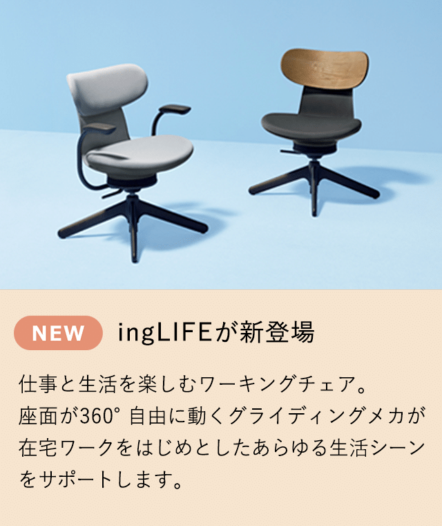 360°揺れるチェア「ingLIFE(イングライフ)」と「ing(イング)」